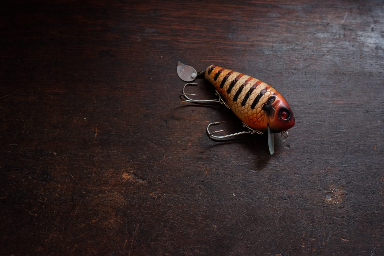 A wake bait with a crankbait-like body, it swims slowly just below the surface.